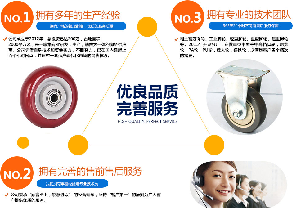 主要分为:塑料脚轮、尼龙脚轮、钢铁脚轮、耐高温酚醛树脂脚轮、橡版胶脚轮、PVC脚轮、TPE静音脚轮等。另外除了主要的脚轮材质之外,脚轮材质还有铸铁铸钢、丁腈橡胶脚轮(NBR)、丁腈胶、天然橡胶脚轮、硅氟橡胶脚轮、氯丁橡胶脚轮、丁基橡胶脚轮、...